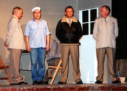 ![]() A hundred and one pounds of fun" The honey-bun scene | ![]() 'There is nothing like a dame' The Men's Chorus with Lynn McTiffin (Bloody Mary) | ![]() Ripley Steele (Capt. Brackett), Ray Casson (Luther Billis), Dale Corless (Lt. Buzz Adams), Barry Weston (Comm Harbison) |