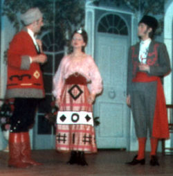 ![]() Sam Plaskett (Pritsch) Ripley Steele (Njegus) Hilary Wishart (Praskovia) Gordon McKee (Cascada) Elizabeth Simpson (Anna Glavari) Peter Hendren (Count Danilo) Bill Lilly (Camille) Betty Robertson (Valencienne) Maurice Ginniff (Bogdanovitsch) Jack Jones (Baron Zeta) Pam Jones (Olga) Chris Wishart (Kromov) Pat Dalton (Sylvia) George Dalton (St. Brioche) | ![]() Ripley Steele (Njegus) | ![]() ‘Riding in the park with you’ Elizabeth Simpson (Anna Glavari) Peter Hendren (Count Danilo) |